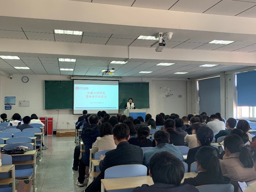 为高质量做好本科教育教学审核评估工作,响应学校“以评促建、以评促改、以评促管、以评促强”的号召,4月18日,机械工程学院于实验馆423召开审核评估工作动员会,全体教职工参加了本次大会,会议由党委书记王伯涛主持。