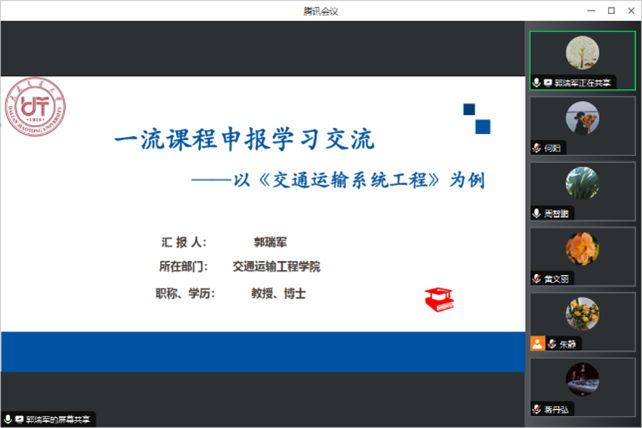 会上,郭瑞军以《交通运输系统工程》课程为例,分享了课程建设及一流课申报经验。朱静通过制图课程中的实际教学经验,讲解了课程思政如何更好的融入课程。袁艳丽向老师们传授了如何将知识图谱应用到教学中,提出当下将信息技术手段融合到教学中的重要性。