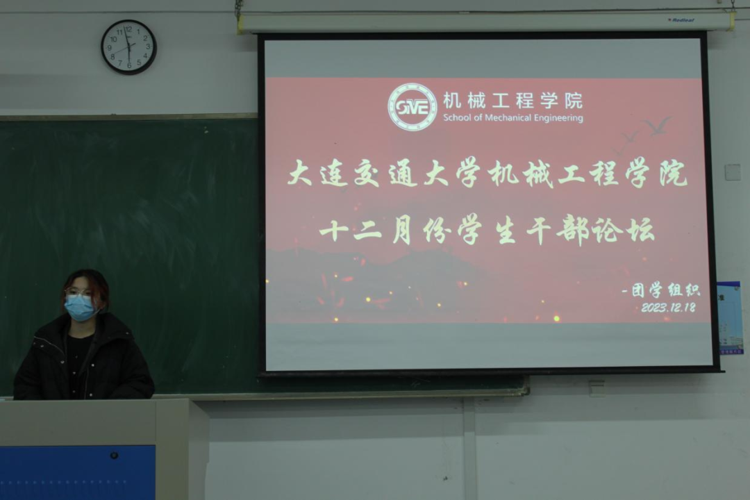 在旅顺口校区举行十二月份学生干部论坛,论坛内容覆盖学生干部培训、业务能力提升、青年大学习工作等内容。本次论坛由院学生会承办,大型活动运营中心主任慕冠华主持,学院团委书记吴伟、2023级辅导员马飞、宋浩源、校学生会主席团成员孙阳及旅顺校区团学组织学生干部参加此次论坛。