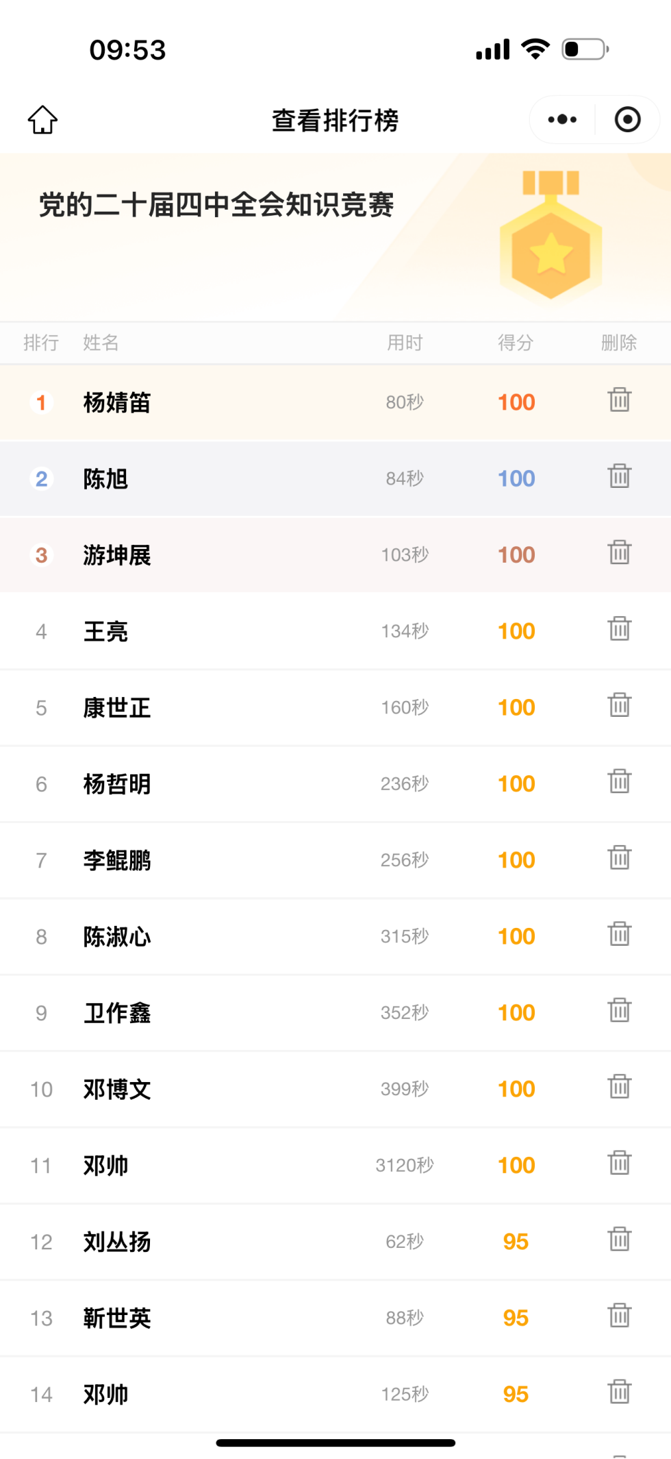 为激发学习热情、提升学习实效,九个学生党支部联合举办“学习党的二十届四中全会精神”知识问答竞赛。竞赛以全会公报、“十五五”规划建议为核心,通过线上参与党员学习问答全覆盖形式开展理论学习成果检验活动。